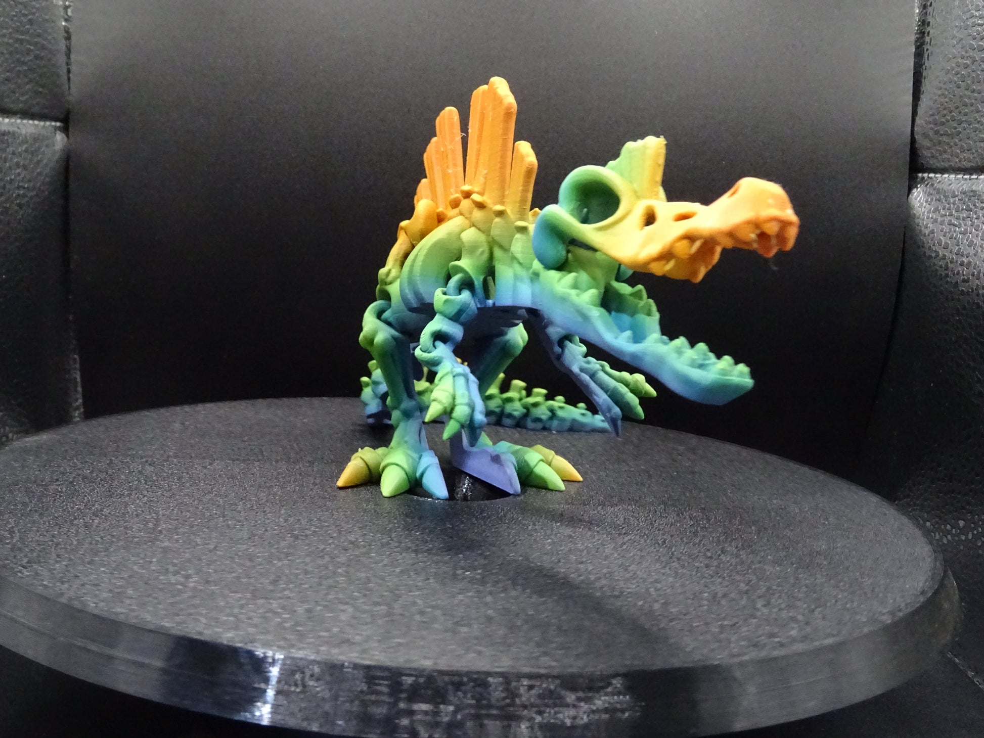 Due to the Rainbow filament every Skeleton Spinosaurus is Uneek as the colour changes will change for every time. so please make sure you are happy not knowing exactly the colour range you will be getting.
